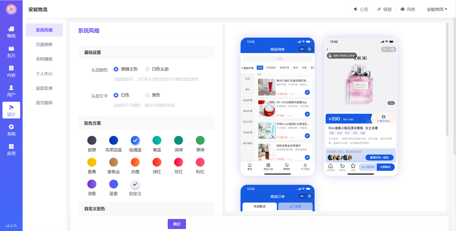 5.设计(目前只有小程序企业页面可以进行操作,其余均为锁死,也可以在底部进行设置修改)