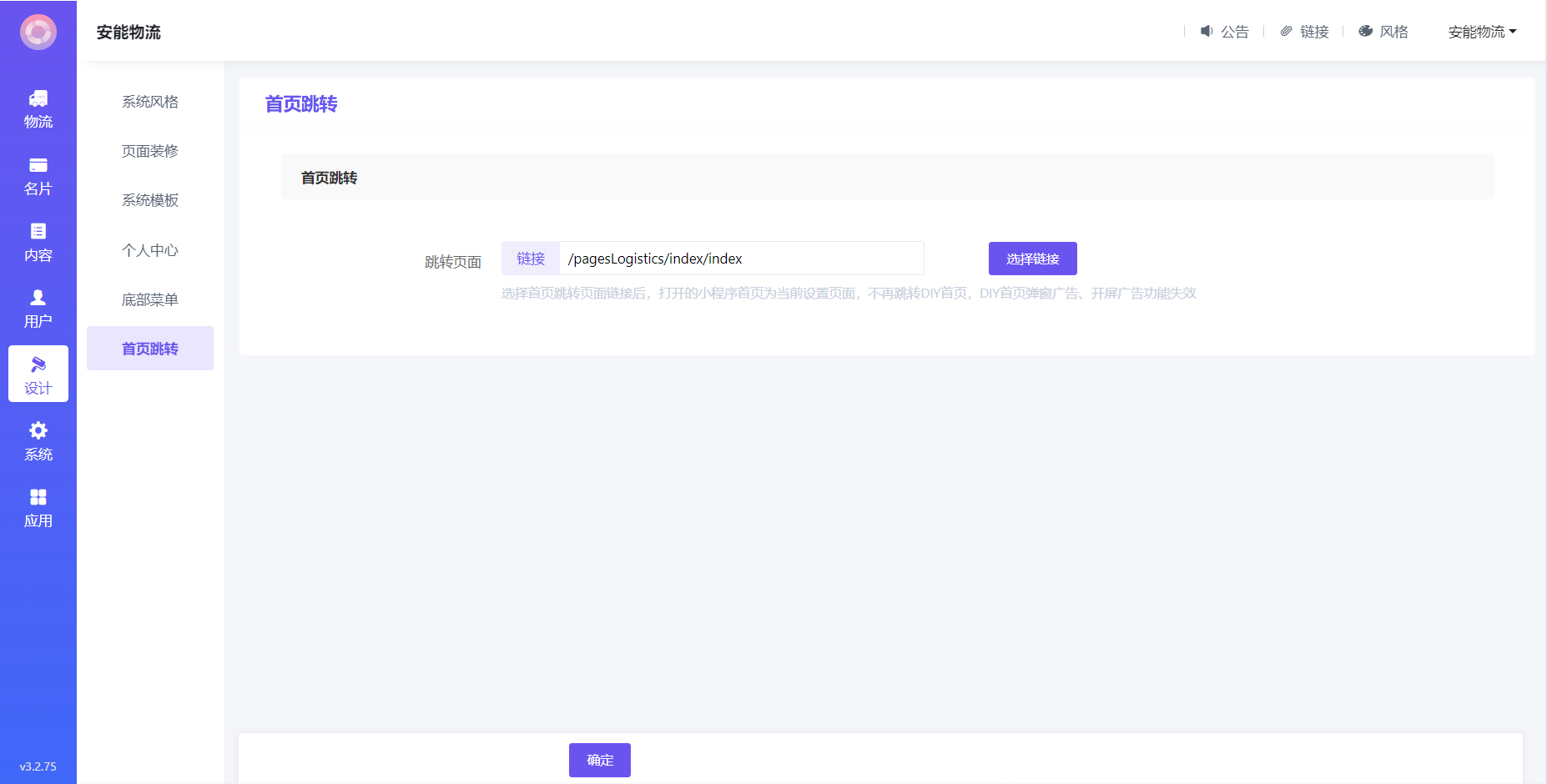 5.设计(目前只有小程序企业页面可以进行操作,其余均为锁死,也可以在底部进行设置修改)
