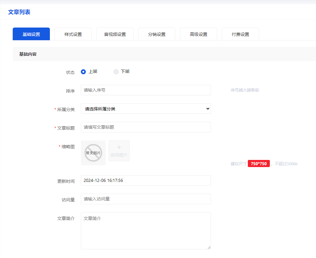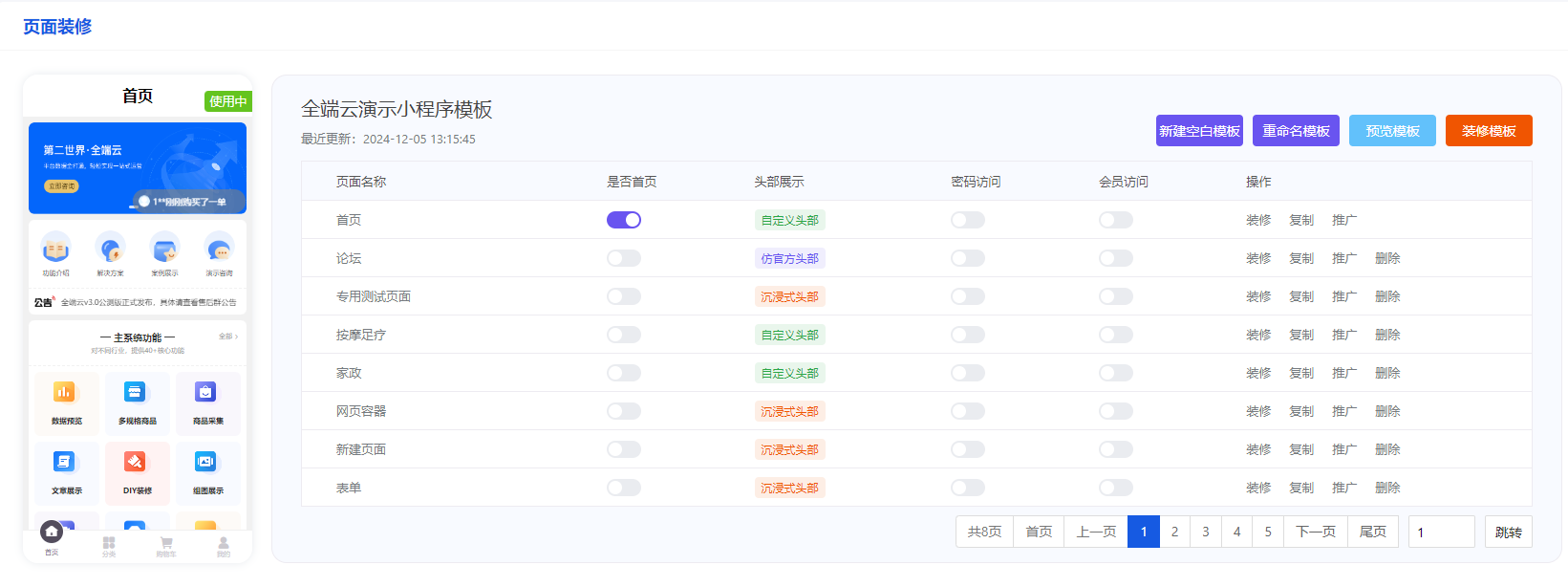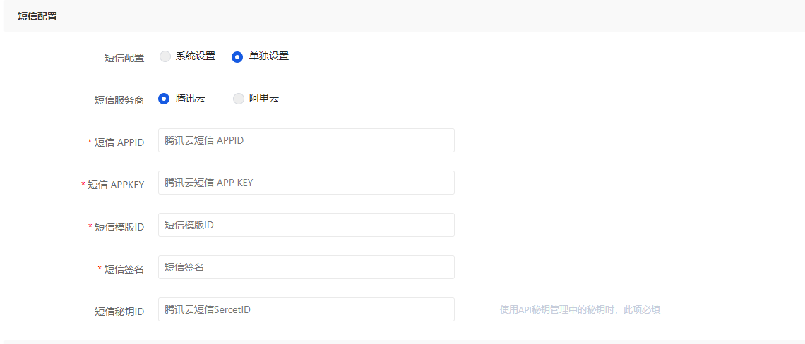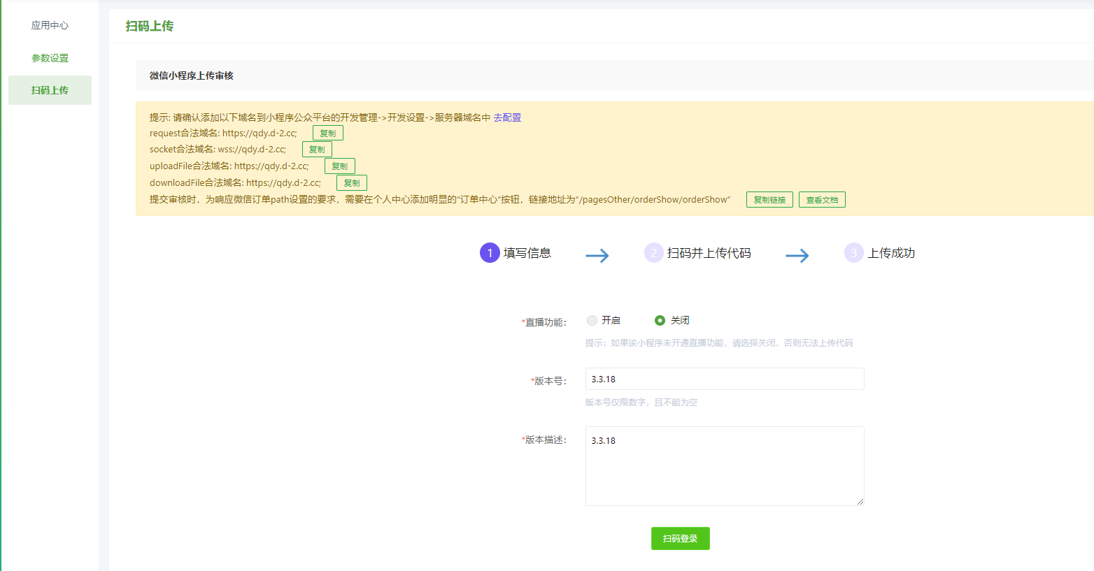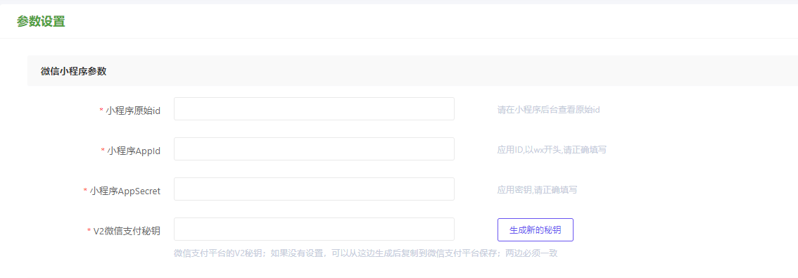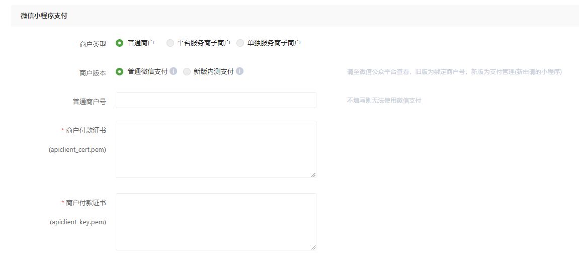 ## **项目实施流程** ### 一、创建项目 #### 【后台创建】仅展示通过系统后台(即:总管理账号)创建的项目;创建项目时选择已有的方案,则复用所选择的方案里已有的权限功能  #### 如何创建项目? #### 1、新建项目  **2、选择项目需要对应的方案,所选的方案也就是项目对应的功能**   **①开通时长:项目可使用的有效期** **②绑定管理员** 选择管理员:选择系统内已有用户作为管理员; 新增管理员:新建管理员的账号密码。 **③版权管理** 平台设置:即全局设置,该项目根据全局设置的版权显示; 单独设置:该项目单独设置版权,不受平台版权影响。   ### <span style="color: red">**④注册设置是必填项,一旦选择保存后则不支持修改,选择之前请认证查看提示,慎重选择**! ⑤选择平台,取决于选择的方案里给的权限 ⑥购买增值功能,取决于选择的方案里给的权限 ### 二、发布上线小程序项目内设置 #### 1、系统基础设置 1)信息设置  2)短信设置 -系统设置:使用总平台配置的短信参数以及短信数量  -单独设置:项目内配置自己的独立短信,支持阿里云和腾讯云短信  3)腾讯地图:配置腾讯地图后小程序内才能获取用户位置  4)全局配置(小程序发布提审之前建议将全局配置内能够关闭的选项都先关闭,待小程序审核通过后再开启)  #### 2、项目内内容添加(商城类的前期只需添加商品,展示类的前期可以只添加文章组图) 1)商品 -首先添加商品分类   -其次添加商品  2)内容 -添加文章需先行添加分类后再进行添加文章   -添加组图需先行添加分类后再进行添加组图   ### 三、小程序页面装修 <span style="color: red">建议可以先使用系统自带模版,等小程序上线成功后,再重新调整小程序首页设计、底部菜单栏和个人中心页面  ### 四、小程序应用设置 应用-微信小程序小程序设置页面,配置小程序参数  #### -小程序参数配置  #### -小程序微信支付配置  ### 五、小程序发布上线 打开应用-小程序上传页面,点击扫码登录,上传小程序版本; 上传版本成功后,打开微信公众平台,扫码登录小程序,在版本管理中提交版本审核,审核通过,小程序即可正式上线
