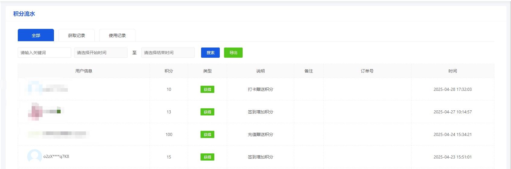 ### 后台操作增减用户积分新增添加备注,在小程序端以及后台积分流水中均会展示备注