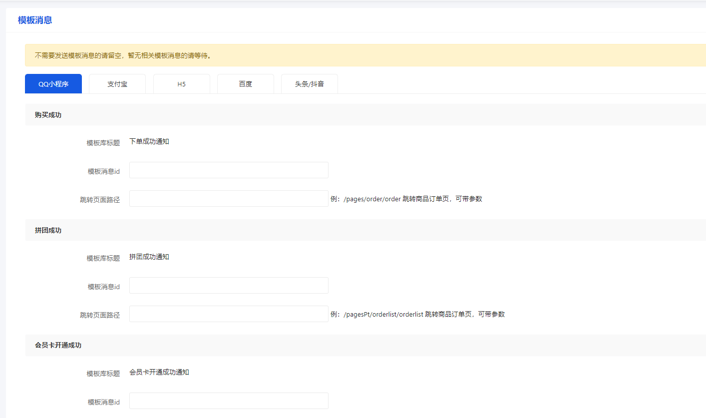 ### <span style="color: red">模板消息已停用,请配置订阅消息