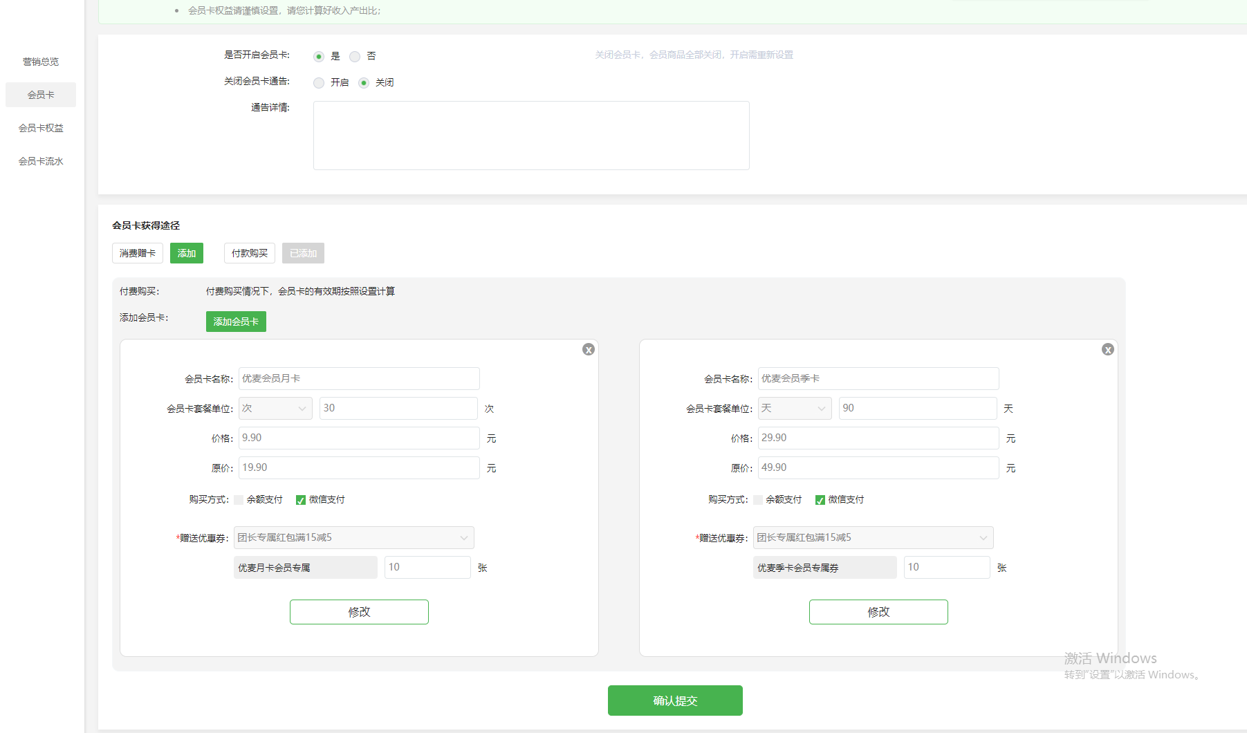 付费会员卡