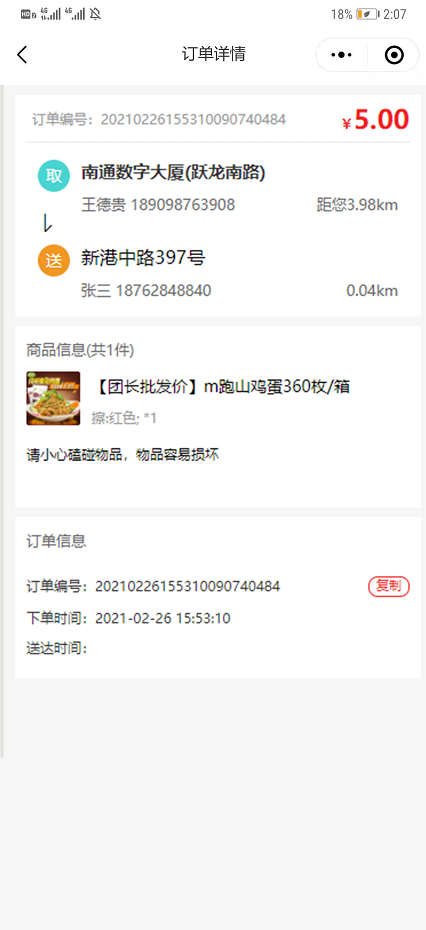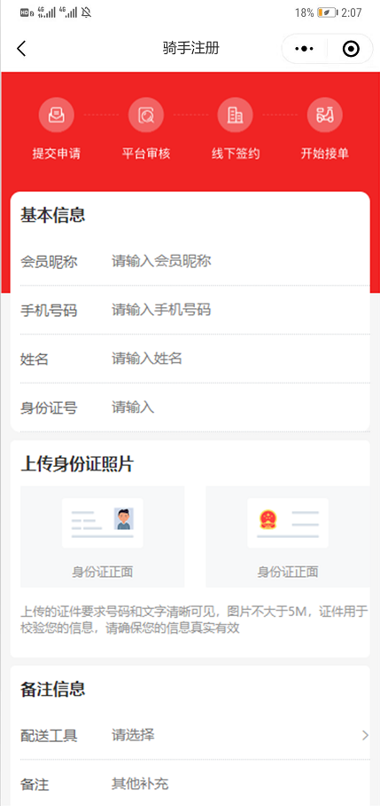 ### 骑手配送 `插件位置:营销->骑手配送` - ### 1.插件介绍 - 平台新增骑手身份,客户选择骑手配送,骑手中心抢单,取货点以平台创建的仓库为起始点,配送到客户地址。 ### 2.核心功能 - 相较于传统的团购,增加及时达,立即配送。 ### 3.使用流程 ```mindmap # 模块流程 ### 1.业务设置 #### 1:开启骑手端 #### 2:添加骑手协议 #### 3:晚上接单设置 ### 2.业务设置 #### 1:设置配送距离配送价格 #### 2:商品的起送费送达距离 #### 3:添加腾讯地图KEY #### 4:平台配送调度 ``` ### 4.常见问题 - 无 ### 5.计算逻辑 - 无 ### 6.界面展示 1.平台配送调度功能 * 当用户下单成功之后没有骑手主动接单,那么系统将进行平台派单的流程  * 指派骑手之后,订单进入到待确认的订单,需要骑手在小程序端骑手端进行确认接单操作  * 骑手需要点击确认接单,则表明骑手确认对该单进行配送处理,如果拒绝接单,那么系统平台则需要继续改派其他骑手进行接单  2.小程序骑手管理中心功能 * **小程序端骑手申请页面**  * **骑手申请成功后等待后台审核,小程序端页面**  * **用户下单成功之后,在骑手管理中心新任务页面会显示骑手配送订单信息。骑手可以进行抢单操作**  * **骑手对平台派单的订单确认接单之后,订单进入待取货的状态,需要骑手去平台仓库进行取货**  用户下单成功之后,在配送大厅新任务页面会显示订单信息,等待骑手进行抢单,抢单成功之后,进入待取货的状态**  取货成功之后则需要骑手进行配送处理  3.骑手个人中心 今日完成的订单数量、总完成的订单数量 我的收入、订单统计、我的钱包、服务协议、设置  我的收入显示今日、本周、本月、累计统计  订单统计  我的钱包  进行提现  骑手端订单详情页面 4.取货信息、收货信息、商品信息、订单信息  骑手在接单成且取货成功之后,可以查看具体路线
