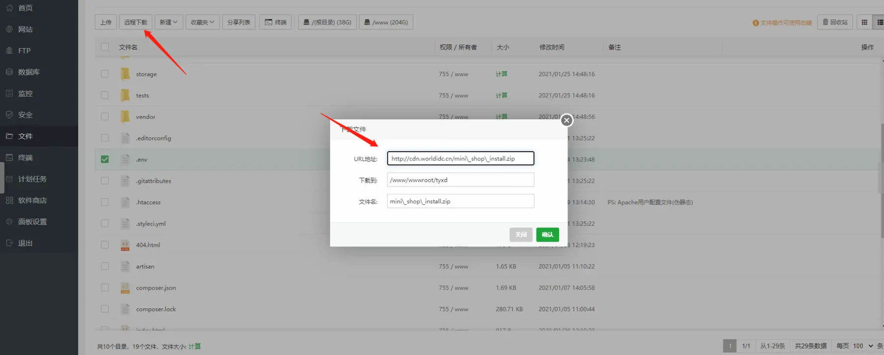 ## **【注意事项】:ionCube扩展跟全端云系统冲突,php7.2不可安装ionCube扩展,若php7.2安装需卸载,可将ionCube扩展安装至其他php版本;** ### **如果与全端云打通,直接升级全端云至最新版,激活支付宝直播商城系统即可打通!** ### **一、 系统环境** 1、系统仅支持安装php7.2; 2、数据库:Mysql5.6及以上;建议Mysql5.7; 3、redis; ### **二、安装包下载地址** https://cdn.worldidc.cn/worldidc_cloud/worldidc_cloud325224032802.zip ### 三、安装流程 #### **1、新建站点后(站点使用php7.2环境,绑定域名\[如暂无域名可联系售后获取免费二级域名\])** #### **2、在站点目录远程下载上面的安装包,或手动下载后上传**  #### 3、下载完解压文件,然后修改—网站目录为public  #### 4、站点修改—伪静态为tinkphp  #### 5、输入:[http://域名](http://xn--eqrt2g/),自动进入安装界面,按照提示配置环境 **php.ini信息修改位置如图**   #### 6、环境配置并检验通过后,填写数据库信息进行安装(redis如果没有修改过密码,请留空不填) #### 7、安装成功,根据默认账号密码,进入后台。根据交付邮件李的系统秘钥,激活系统。(如若没有收到邮件,请联系客服)。 **系统登录默认账号密码** [http://域名](http://xn--eqrt2g/) 账号:admin 密码:admin #### 8、联系售后或从邮件中获取密钥,激活系统 #### 9、激活后,请更新系统至最新版,正式开始使用 **感谢您对第二世界的支持!**