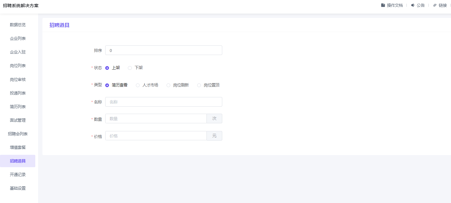 招聘道具可以理解为叠加包。  含四个叠加包项目,这块可以按实际需求添加。