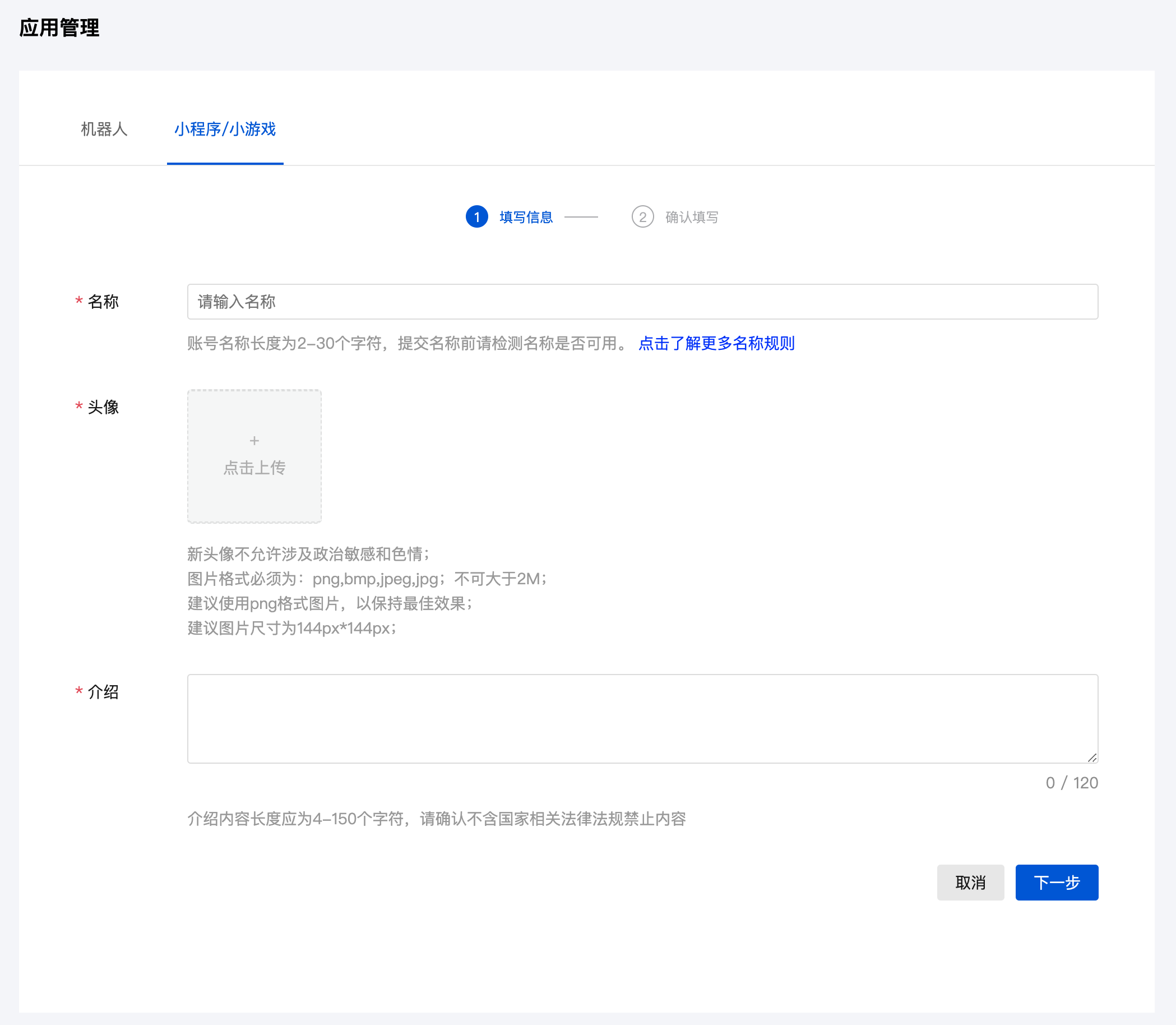 **可参考官方文档:https://q.qq.com/wiki/#_4-%E5%BC%80%E5%8F%91qq%E5%B0%8F%E7%A8%8B%E5%BA%8F** ### 1、点击「创建小程序」  ### 2、小程序资料填写页面  提示: 所有 QQ 小程序必须遵守《QQ 小程序运营规范》 ,开发者可参考相关文档了解详细审核标准。 完成创建后,即可点击已创建的应用进入管理端 ### 3、成员管理 路径:权限管理——成员管理 ### 4、选择服务类目 所选类目需与小程序本身服务相关,并按提示提供相关的资质; 每个小程序最多可以选择 5 个类目。 路径:设置——基本设置——服务类目 tips: 1、后续上线支持修改名称 2、此步骤不意味着抢占名字,最终以审核上线为准
